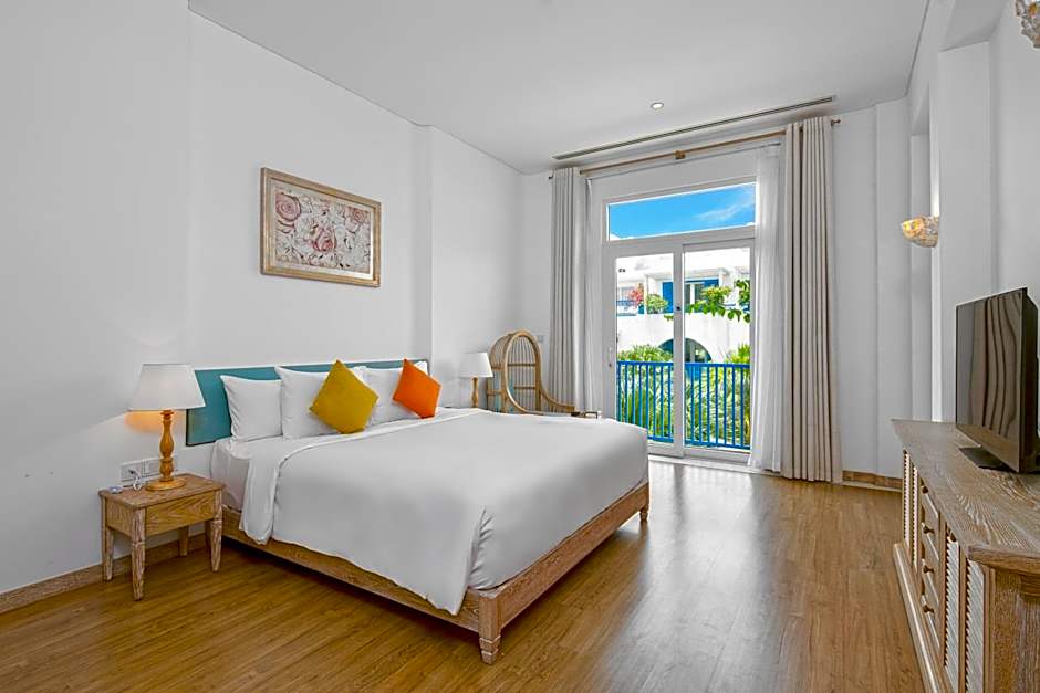 Santorin Family Suite with Balcony is a room arranged to suit a small family. 1 large bed and 02 small beds are arranged to separate each other to create privacy for parents and children to still be cared for by their parents but still have a family feeling when staying in the same room.The private bathroom includes a bathtub, a shower, free toiletries and hairdryer. Room is not allow extrabed